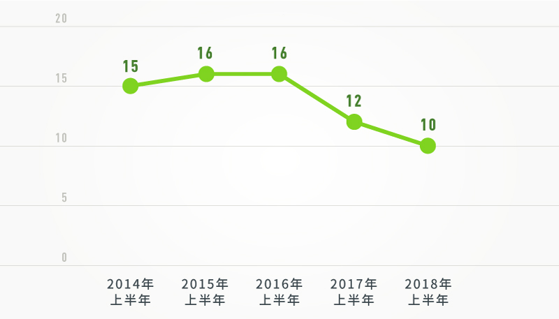 2015年以来,上半年厅局级干部落马数量走势图